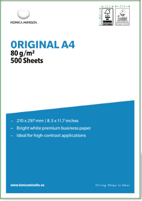 Prodotta dalla cartiera Mondi, una tra le più affermate cartiere europee del settore, questa carta dalla funzione universale con un buon rapporto qualità/prezzo è destinata ai dealer KONICA MINOLTA, nelle due versioni Original e Standard